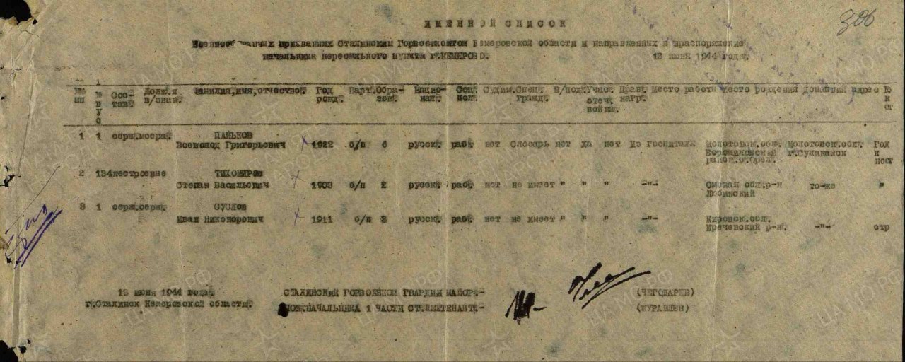 | 4308453011 | СУСЛОВ Иван Никонорович | 1911 г. р., д. Ключи Гарского с/с, красноармеец, сапер, 05715 А пп, г. Омск, в сентябре 1944 г. пропал без вести. Комментарий: Согласно донесениям послевоенного периода (https://www.obd-memorial.ru/html/info.htm?id=57551929) место рождения д. Клюи, а не Ключи. | Кировская область, Оричевский район |