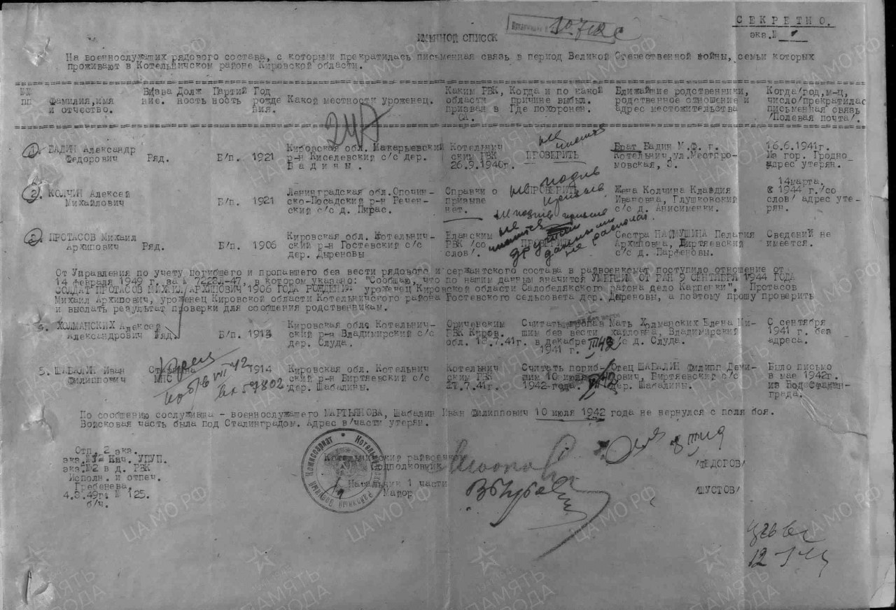 | 4308467024 | ХОЛМАНСКИХ Алексей Александрович | 1914 г. р., д. Слуда, Владимирского с/с, Котельничского р-на, красноармеец, рядовой, в марте 1942 г. пропал без вести. | Кировская область, Оричевский район |