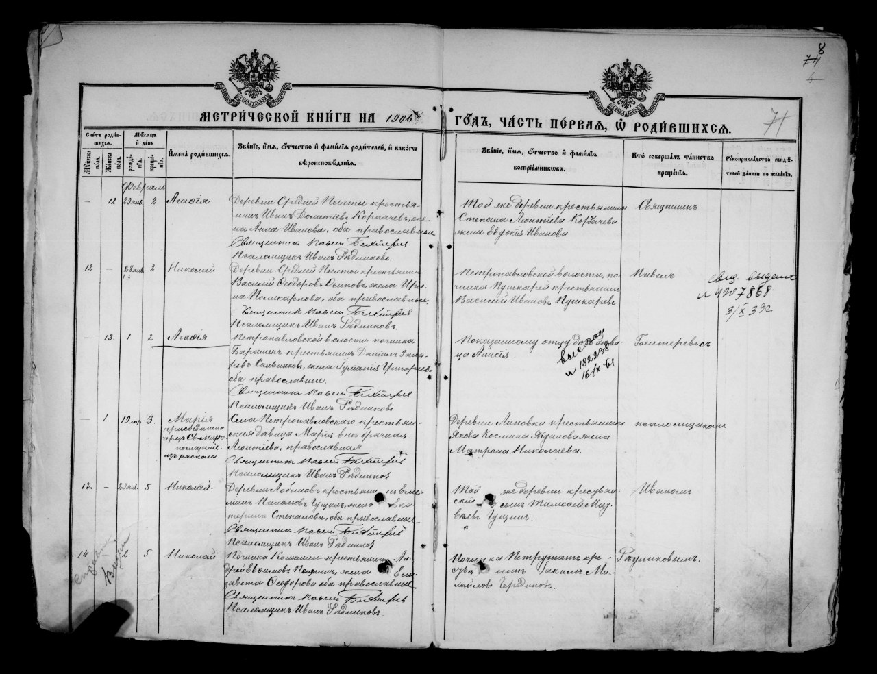 | Родился ребёнок: Осипов Григорий Николаевич | - | деревня Средняя Пыхта (Дебёсский район, Удмуртская Республика) - ныне не существует | |