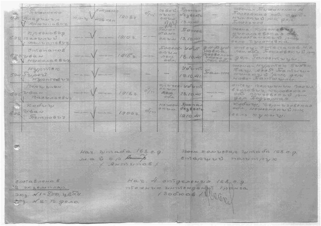 Списки воинов, погибших и пропавших без вести на фронтах Великой Отечественной войны