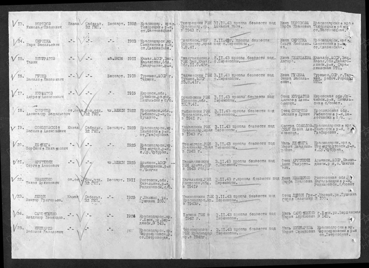| 4308366007 | КУРБАТОВ Андрей Алексеевич | 1916 г. р., д. Неустроевы, Пищальского с/с, казак сабельной 32 гкп, 9 гв. Краснознаменная Кубанская Казачья кавал. дивизия п/п 14398-К, 3.11.1943 г. погиб в бою. Захоронен в Николаевской области, с. Перекоп. | Кировская область, Оричевский район |