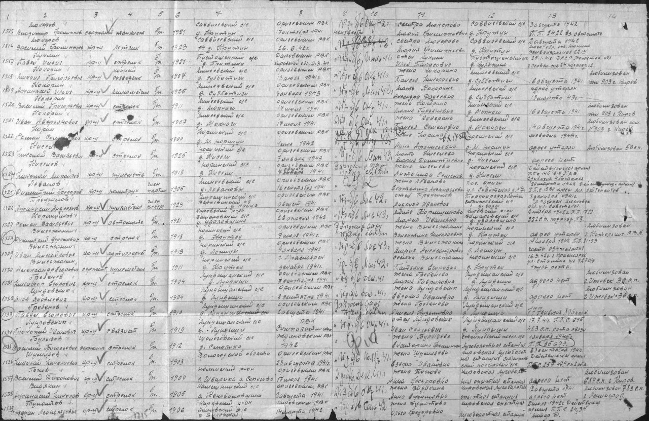 Попов Василий Тихонович, 1909 г.р., уроженец д. Серегово (Березово) Шварихинского с/с Нолинского района. До мобилизации работал с 27.06.1940 г. на Лугоболотной опытной станции бригадиром и проживал на раъезде Стрижи. Мобилизован 18.07.1941 г. Оричевским РВК в 689 сп. Фактически: красноармеец, 1-й батальон 1067 сп 311 сд (принял присягу 24.07.1941 г. в г. Кирове). Писем не было. Адреса нет. Считается пропавшим без вести в декабре 1941 г.