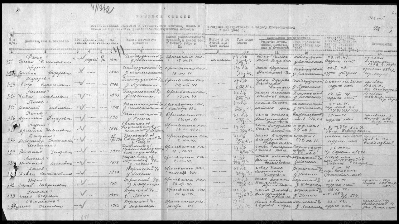 (Источники информации: Алфавитная книга призванных по мобилизации в период Великой Отечественной войны Оричевским РВК Кировской области на «П» стр. 5 об, 6, № 82)