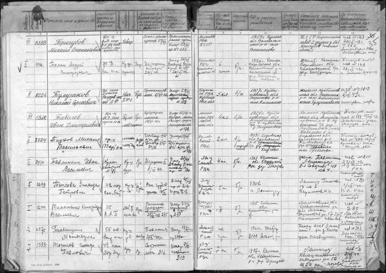 | Умер | 13.07.1942 | умер от болезни в госпитале |