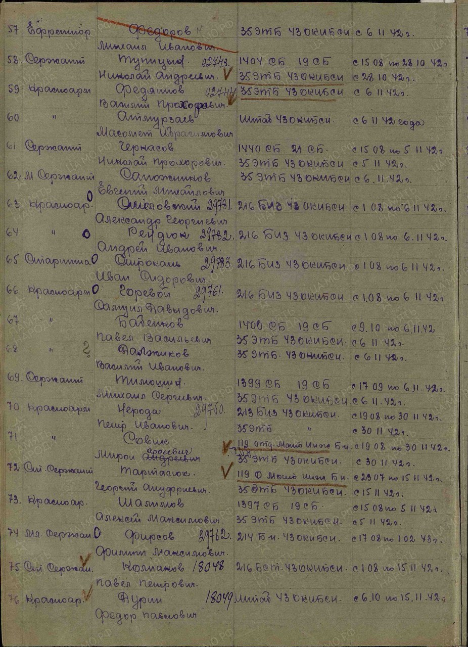 (Источники информации: Алфавитная книга призванных по мобилизации в период Великой Отечественной войны Оричевским РВК Кировской области на «Т, У, Ф» листы 7 об, 8, № 117; ЦАМО. Фонд: 30319. Опись: 2. Дело: 24; Фонд: 32344. Опись: 296360с, 169713с. Дело: 1, 2; Фонд: 32344. Опись: 196817. Дело: 3; Фонд: 33. Опись: 686044. Дело: 700,1694, 4310; Фонд: 30412. Опись: 2. Дело: 28).