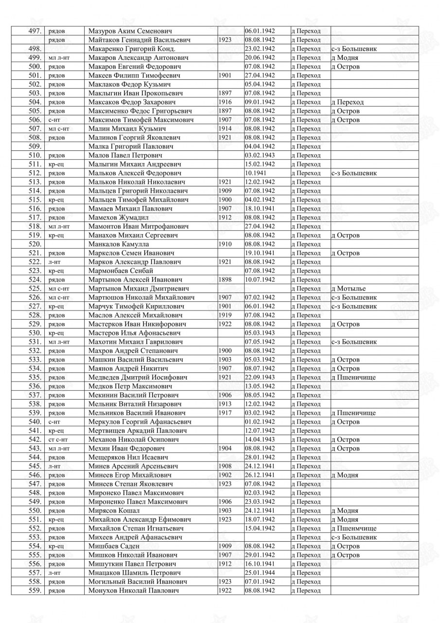 (Источники информации: Алфавитная книга призванных по мобилизации в период Великой Отечественной войны Оричевским РВК Кировской области на «М» листы 2 об, 3, № 37; ЦАМО. Фонд: 7737. Опись: 74237. Дело: 8; Фонд: 58. Опись: 818884. Дело: 70; Фонд: 7679. Опись: 364959. Дело: 1; дело № 115 Оричевского райотдела социального обеспечения)