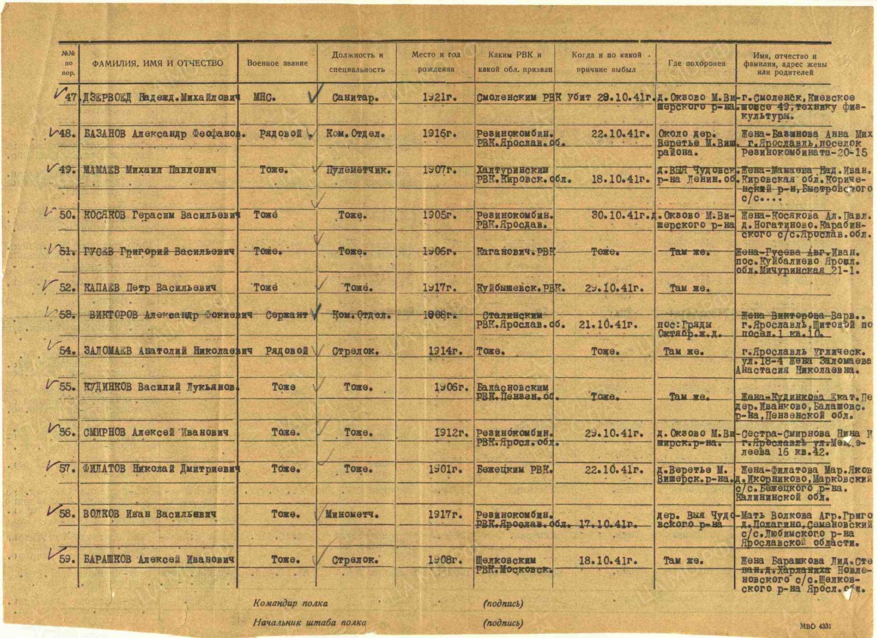 Списки воинов, погибших и пропавших без вести на фронтах Великой Отечественной войны