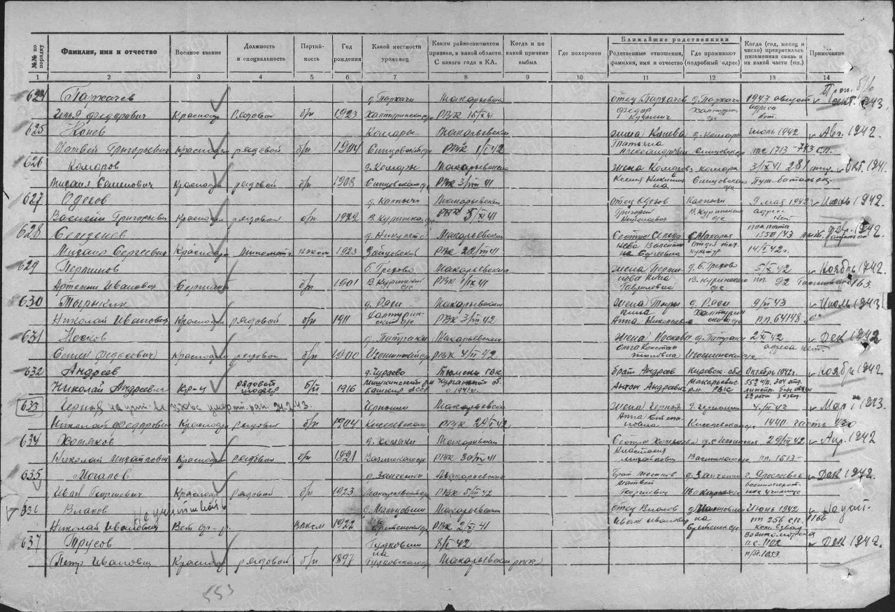 | 4305616021 | СЕЛЕЗНЕВ Михаил Сергеевич | 1923 г. р., с. Макарье, призван Макарьевским РВК, красноармеец, пропал без вести в феврале 1942 г. | Кировская область, Котельничский район |
