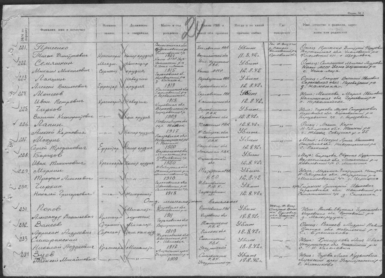 Списки воинов, погибших и пропавших без вести на фронтах Великой Отечественной войны