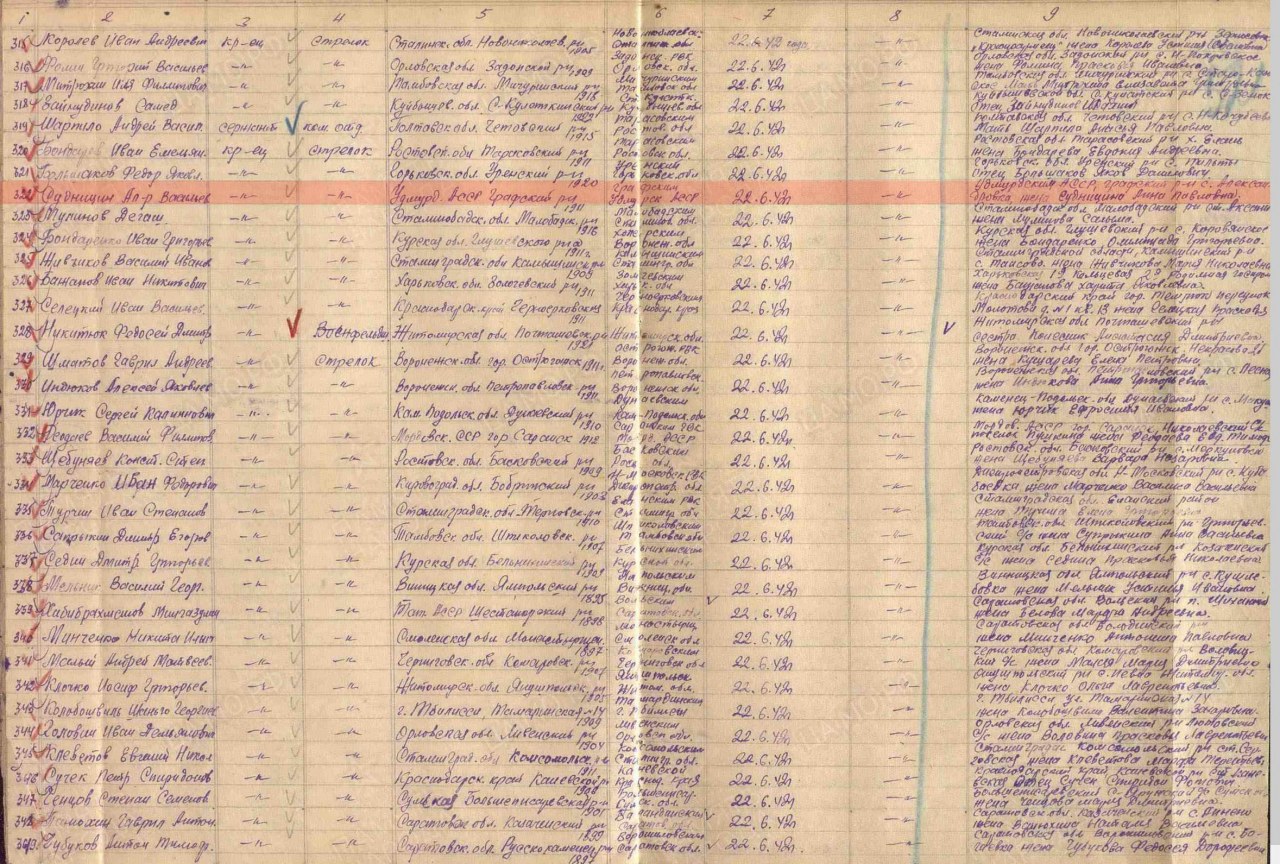 | Пропал без вести | 22.06.1942 | Пропал без вести в июне 1942 г. в районе с. Н.Ивановка Шевченского района Харьковской области Украинской АССР. Предположительно попал в плен. | |