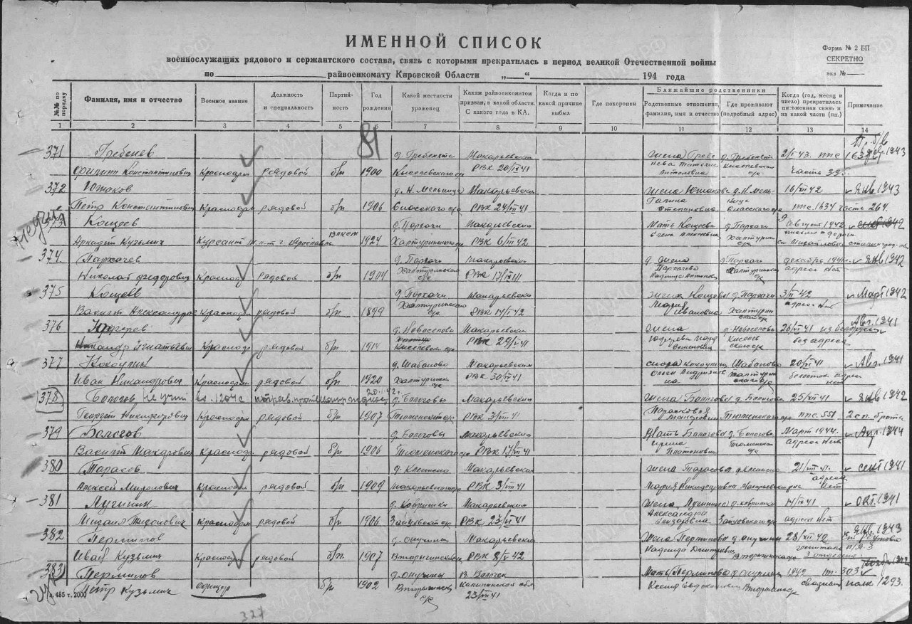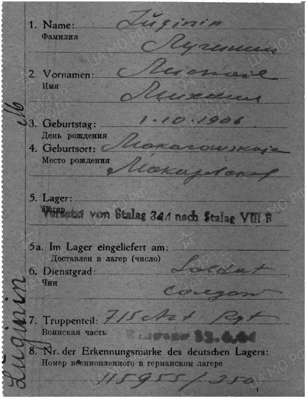 | Пропал без вести | Октябрь 1941 | Лагерь: шталаг 343/шталаг 350/шталаг VIII B/шталаг VIII F (318), место пленения: Красная Горка |
