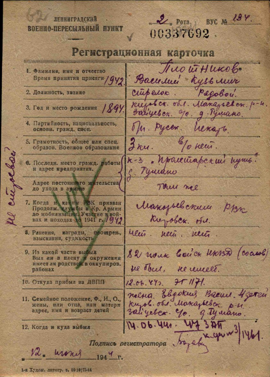 | Родился | 1894 | деревня Туманы (Шестаковский, Плотниковы) (Котельничский район, Кировская область) - ныне не существует |