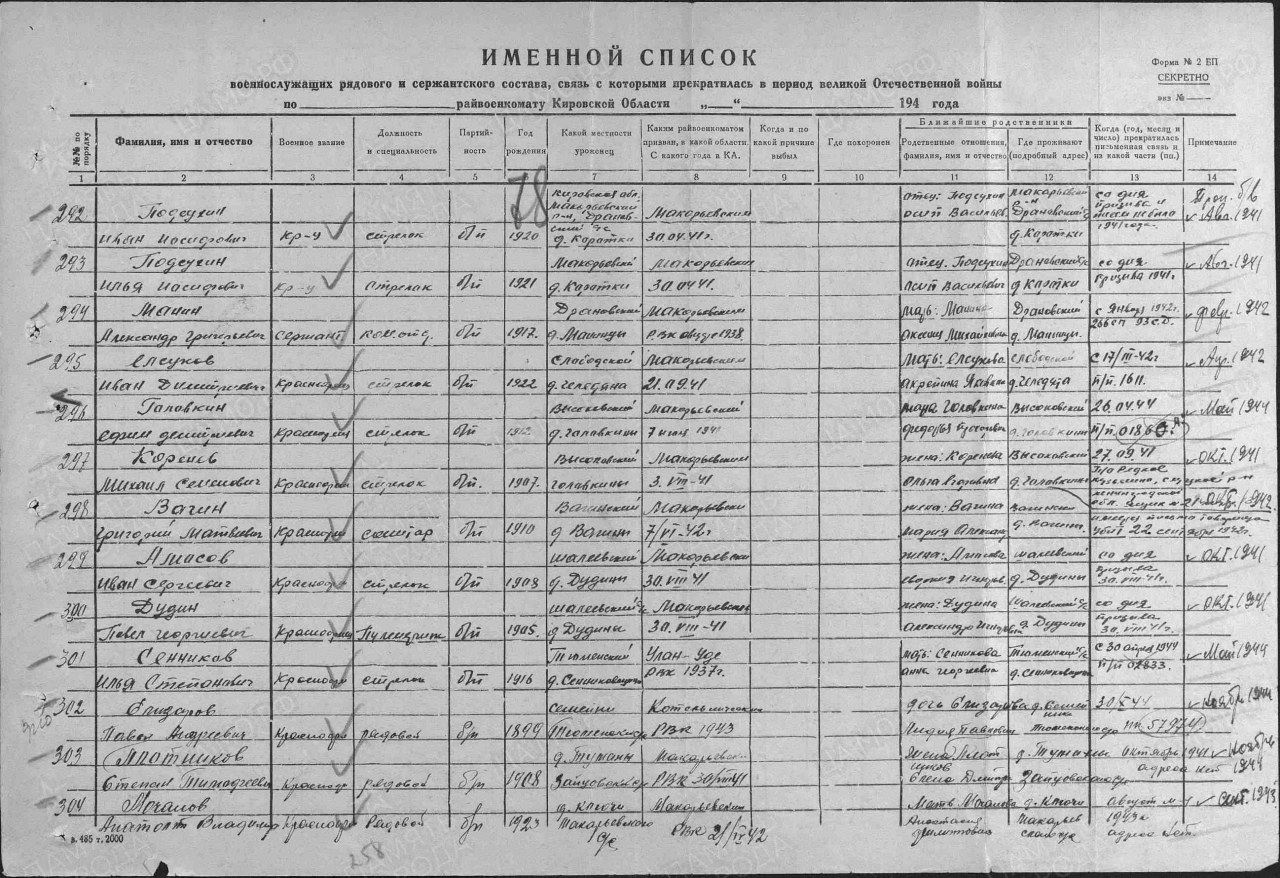 | 4305583014 | ПЛОТНИКОВ Степан Тимофеевич | 1908 г. р., из д, Туманы, призван Макарьевским РВК, кр-ц, пропал без вести в ноябре 1941 г. | Кировская область, Котельничский район |