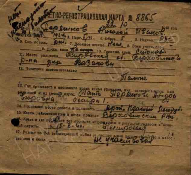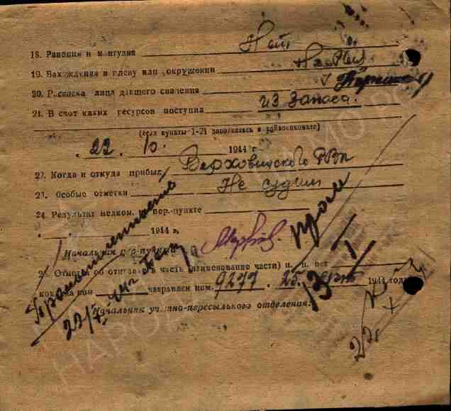 Военно-пересыльный пункт: Военно-пересыльный пункт Кировского областного военкомата, Кировская обл. Выбытие из воинской части: 25.10.1944
