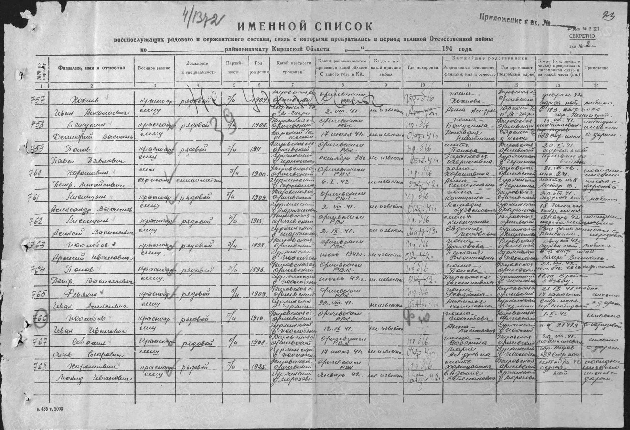 Списки воинов, погибших и пропавших без вести на фронтах Великой Отечественной войны