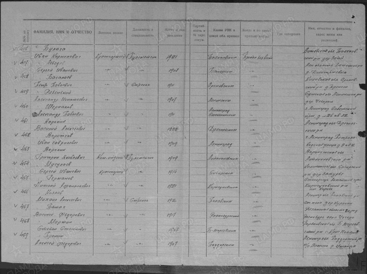 Списки воинов, погибших и пропавших без вести на фронтах Великой Отечественной войны