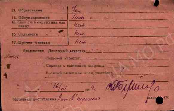 | Награждён: Медаль «За боевые заслуги» | 19.10.1944 | Приказ № 60/н по 641 сп 165 сд | |