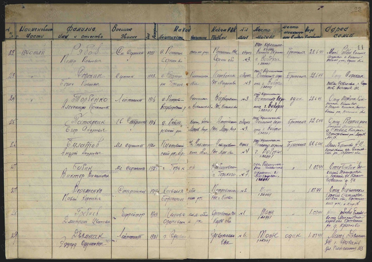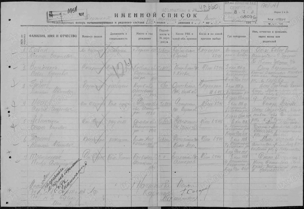Списки воинов, погибших и пропавших без вести на фронтах Великой Отечественной войны