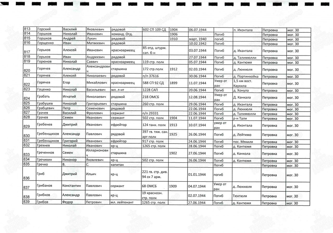 | 4308311010 | ГРЕБЕНЕВ Дмитрий Иванович | 1913 г. р., род. Вершининцы Шалеговского с/с, ефрейтор, разведчик 124 Любаньский танковый полк. 30.06.1944 г. умер от ран. Захоронен в Ленинградской обл., Выборгский р-н, 2 км ю. в. д. Ихантала. | Кировская область, Оричевский район |