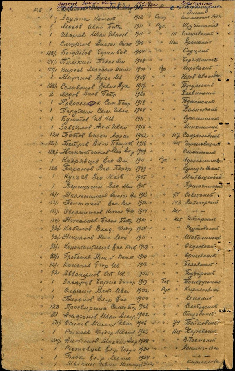 (Источники информации: Алфавитная книга призванных по мобилизации в период Великой Отечественной войны Оричевским РВК Кировской области на «Г» листы 2 об, 3, № 29; ЦАМО. Фонд: 7737. Опись: 74237. Дело: 8; Фонд: 33. Опись: 44677. Дело: 549; Фонд: 6272. Опись: 272673с. Дело: 6; Фонд: 8312. Опись: 301963. Дело: 4; Филиал ЦАМО (Архив военно-медицинских документов).Фонд: Картотека ранений. Опись: Картотека общего учета. Номер ящика: 054-33)