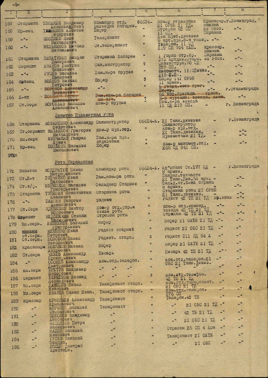 | Награждён: Медаль «За отвагу» | 13.07.1943 | Приказ № 15/н по 103 тбр 3 тк | |