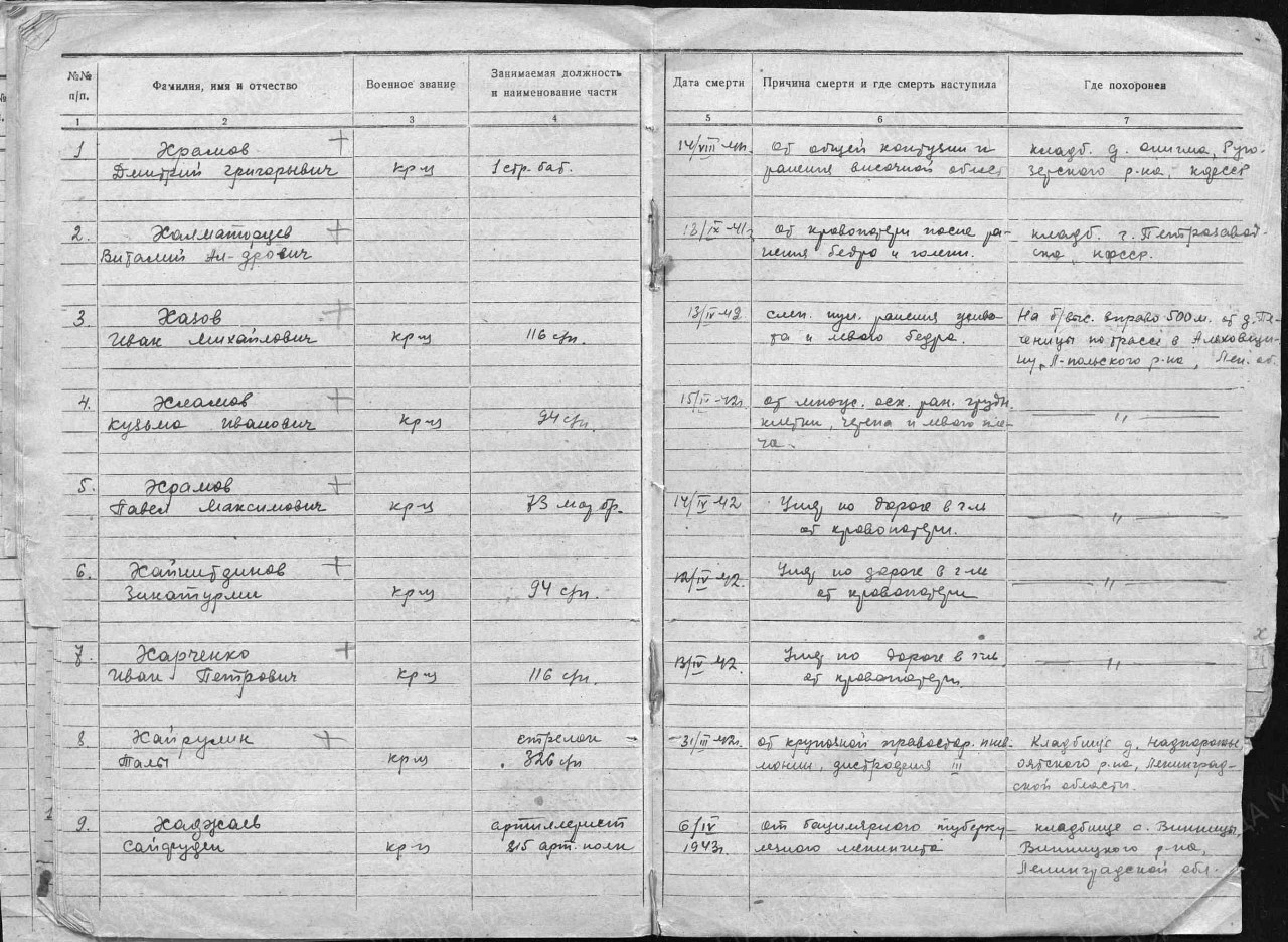 | Умер | 15.04.1942 | Умер от ран в ППГ 90 |