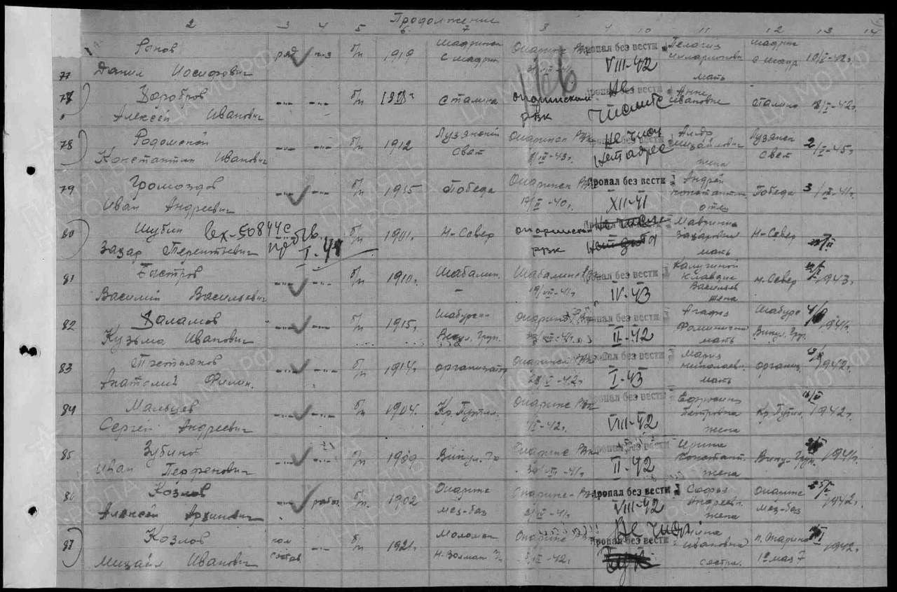 | 4308257018 | ХАЛАМОВ Кузьма Иванович | 1915 г. р., из с. Шабуры, Шабурского с/с. Призван Опаринским РВК, красноармеец. Пропал без вести в декабре 1942 г. | Кировская область, Опаринский район | |||