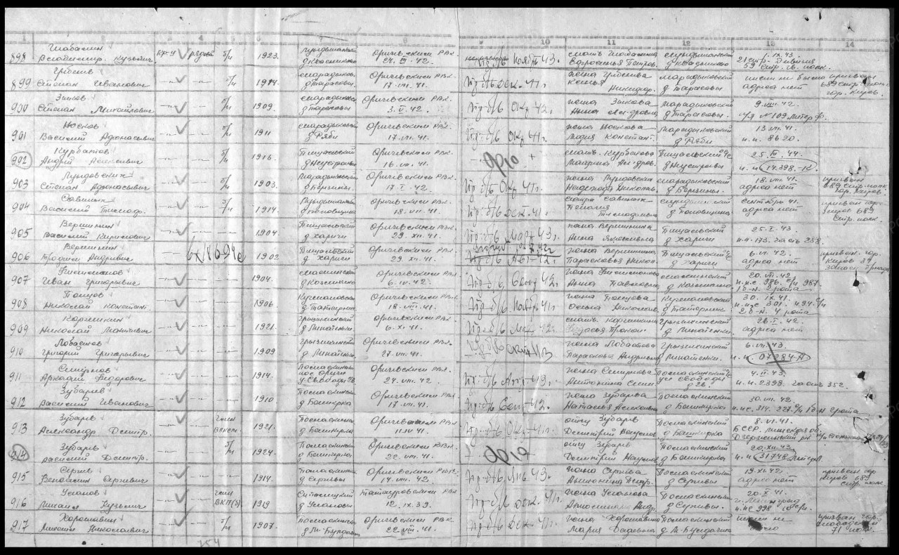 | 4308332002 | ЗУБАРЕВ Василий Иванович | 1910 г. р., д. Башкерка Помаскинского с/с, красноармеец, рядовой, 227 сп, 1 батальон, 2 рота, 314 ппс, в сентябре 1942 г. пропал без вести. | Кировская область, Оричевский район |