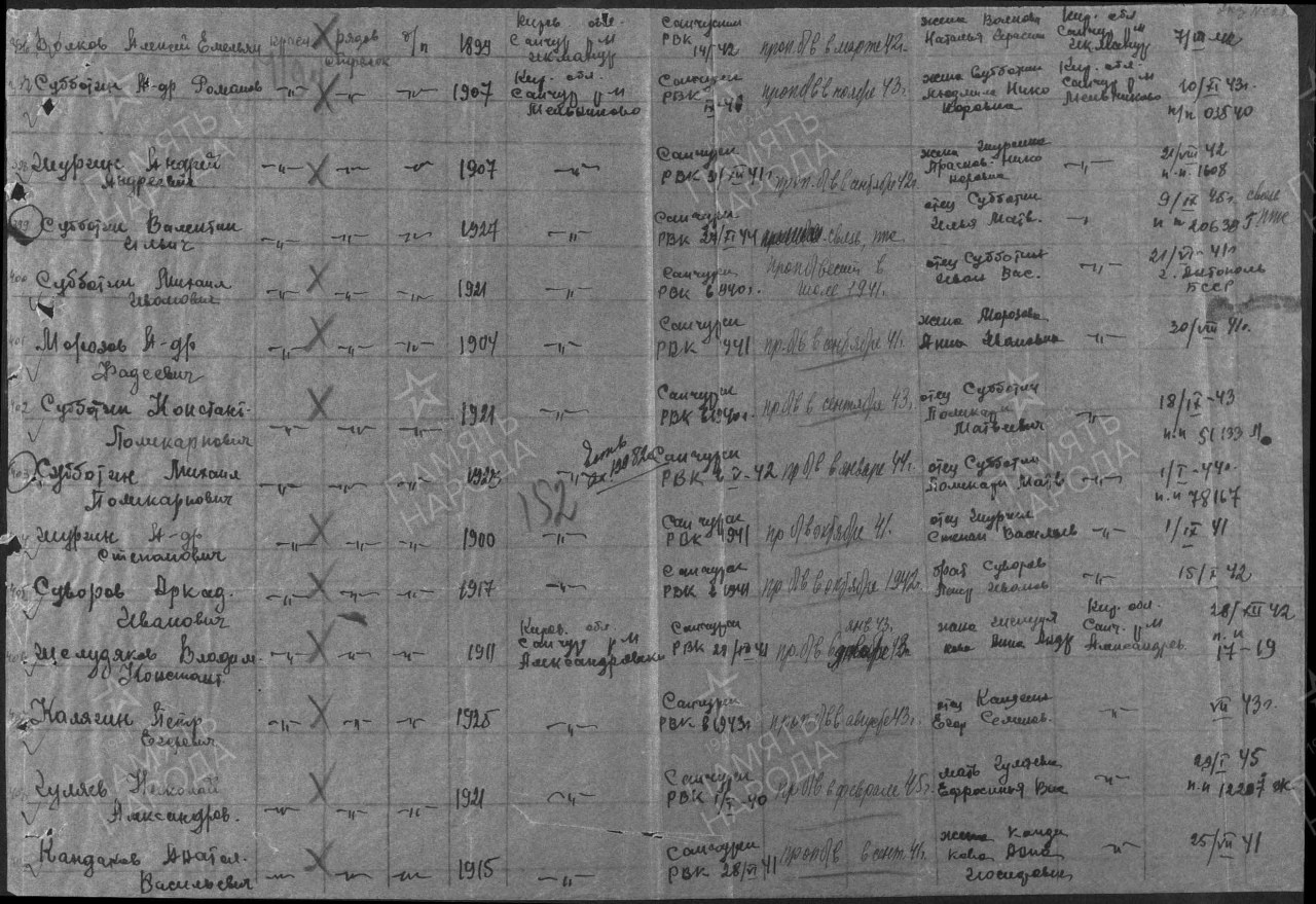 | 4309473008 | КАНДАКОВ Анатолий Васильевич | 1915 г. р., д. Александровские Сметанинского с/с, красноармеец. В сентябре 1941 года пропал без вести. | Кировская область, Санчурский район |