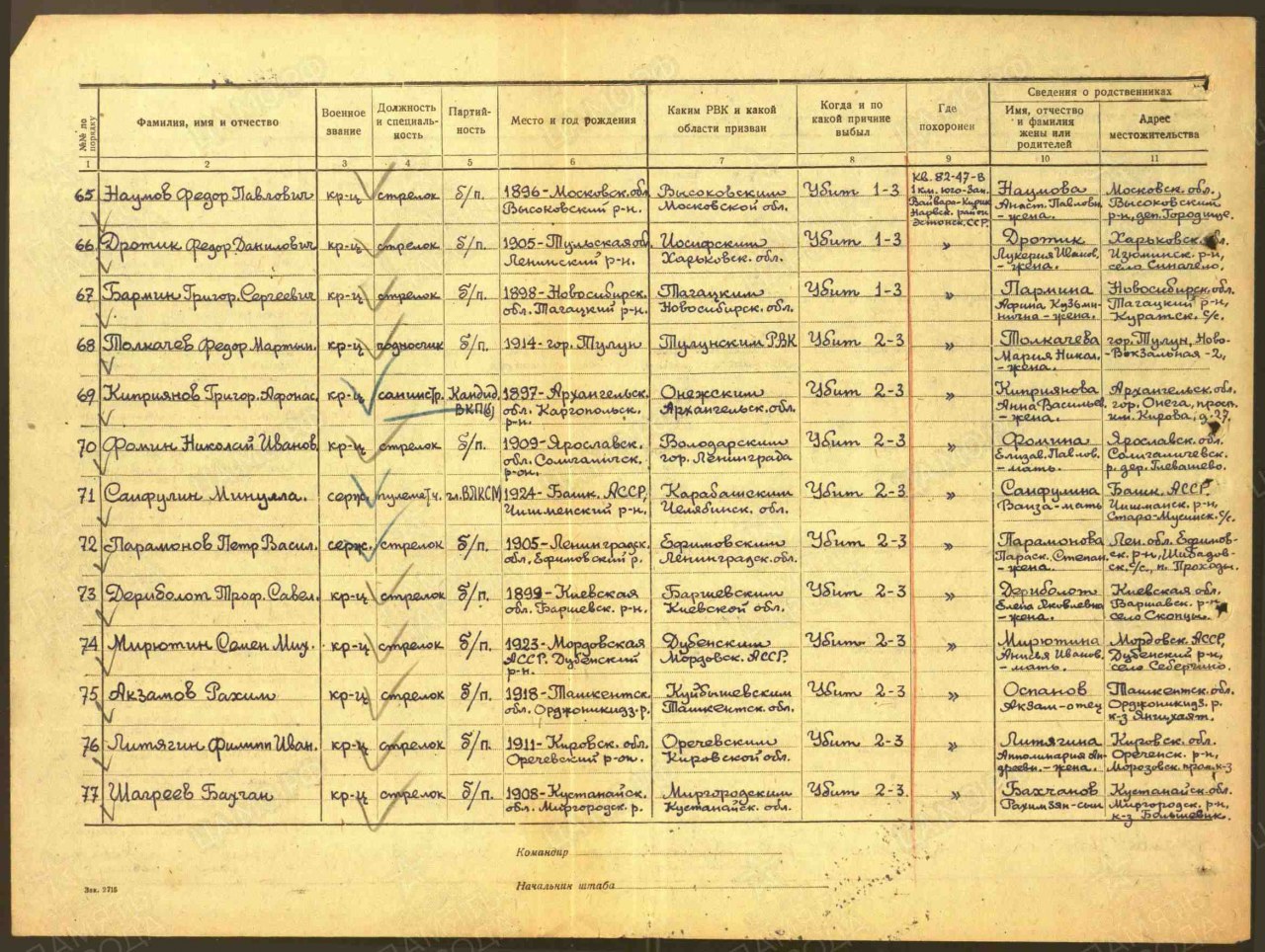Списки воинов, погибших и пропавших без вести на фронтах Великой Отечественной войны