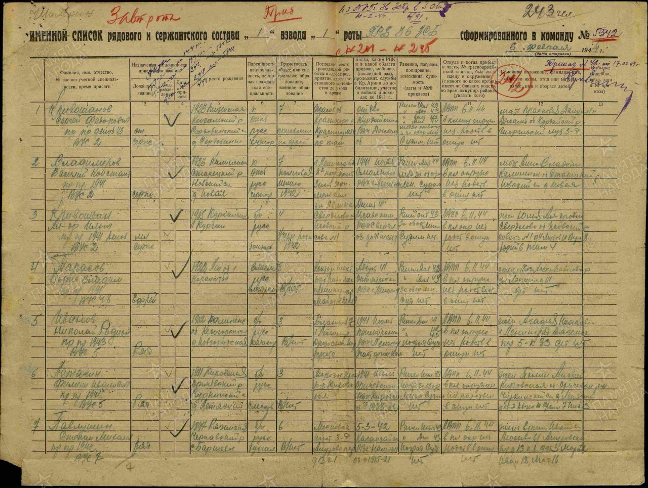 (Источники информации: Алфавитная книга призванных по мобилизации в период Великой Отечественной войны Оричевским РВК Кировской области на «Л» листы 2 об, 3, № 19; ЦАМО. Фонд: Картотека ПРБ 36 ЗСД.Дело: 2027; Фонд: 411. Опись: 10187. Дело: 203; Фонд: 8589. Опись: 452542. Дело: 12; Фонд: Ленинградский ВПП. Опись: 530769. Дело: 43003; Фонд: 58. Опись: 18002. Дело: 202; Филиал ЦАМО (Архив военно-медицинских документов). Фонд: Картотека ранений. Номер шкафа: Ленинградская картотека. 1941-1942 гг. Номер ящика: Ленинградская картотека. 1941-1942 гг-261-18; Номер ящика: Ленинградская картотека. 1943-1945 гг-293-28).