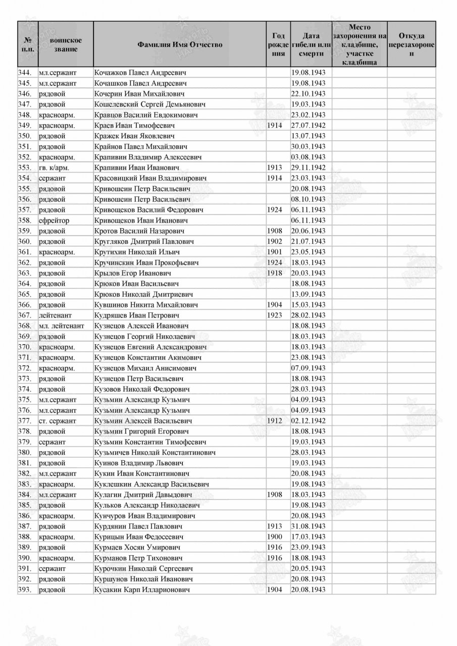 | 4308358008 | КРОТОВ Василий Назарович | 1908 г. р., д. Перевоз Быстрицкого с/с, мл. сержант, повозочный 525 сп, 171 сд. 28.06.1943 г. погиб в бою. Захоронен в Новгородской области, Старорусский район, д. Филатово. | Кировская область, Оричевский район |