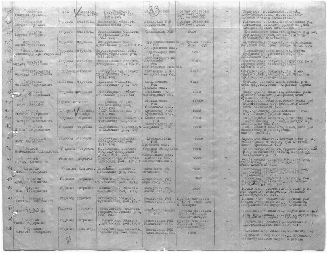 | Пропал без вести | 25.10.1941 |