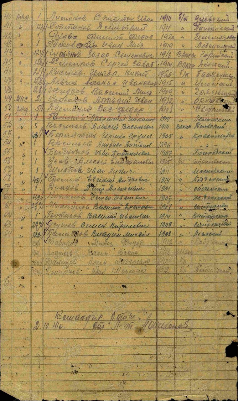 | 4308353001 | КОРСАКОВ Аркадий Иванович | 1912 г. р., д. Заболотье, Шабалинского с/с, рядовой, стрелок, 939 сп, 259 сд, 25.10.1941 г. пропал без вести. | Кировская область, Оричевский район |