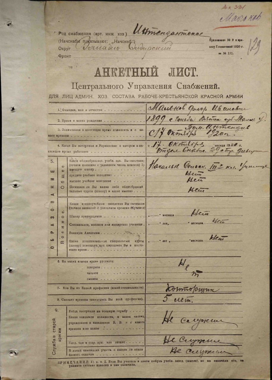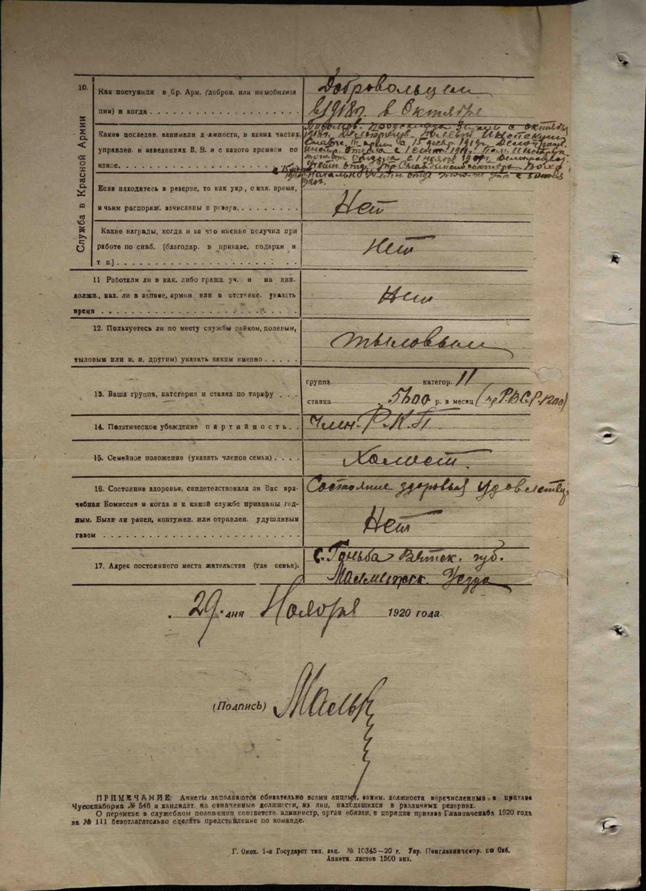 | Служба в армии | Октябрь 1918 | Красная армия, доброволец | https://gwar.mil.ru/ |