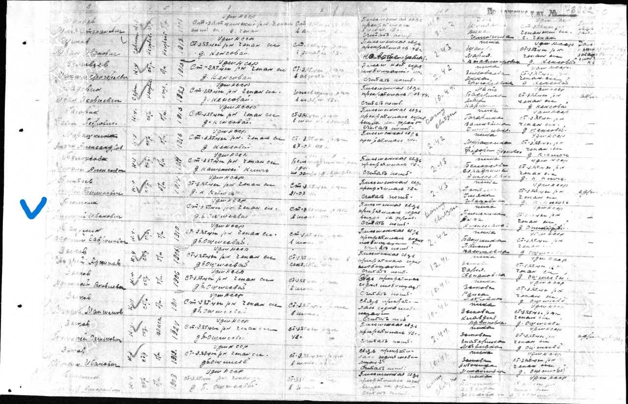| Женился на: Анна Алексеевна | - | деревня Малый Ошмесвай (Увинский район, Удмуртская Республика) - ныне не существует | Анна Алексеевна награждена медалью «За доблестный труд в ВОВ 1941-1945 гг.» |