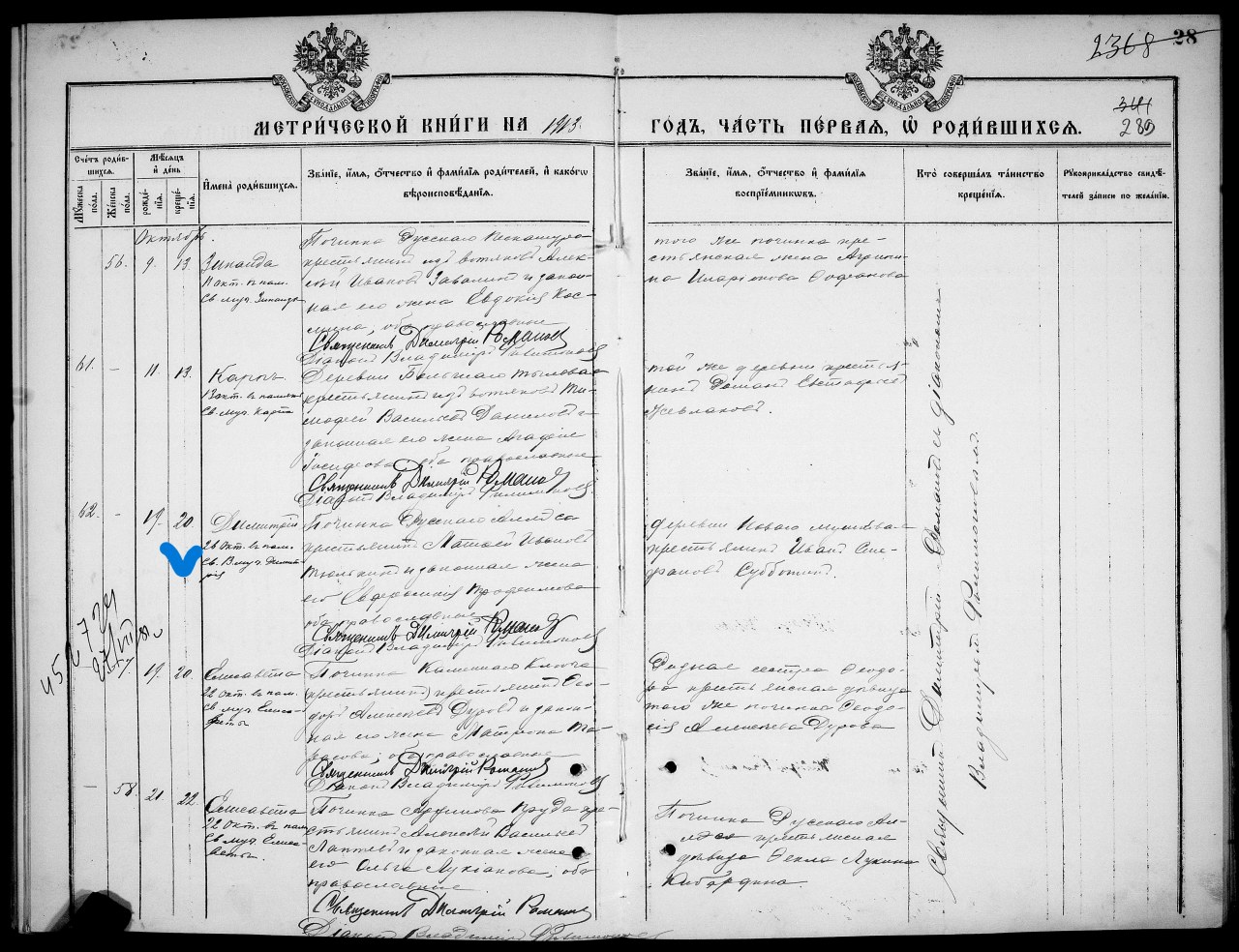 Метрическая книга с записью о рождении Дмитрия Матвеевича Тюлькина