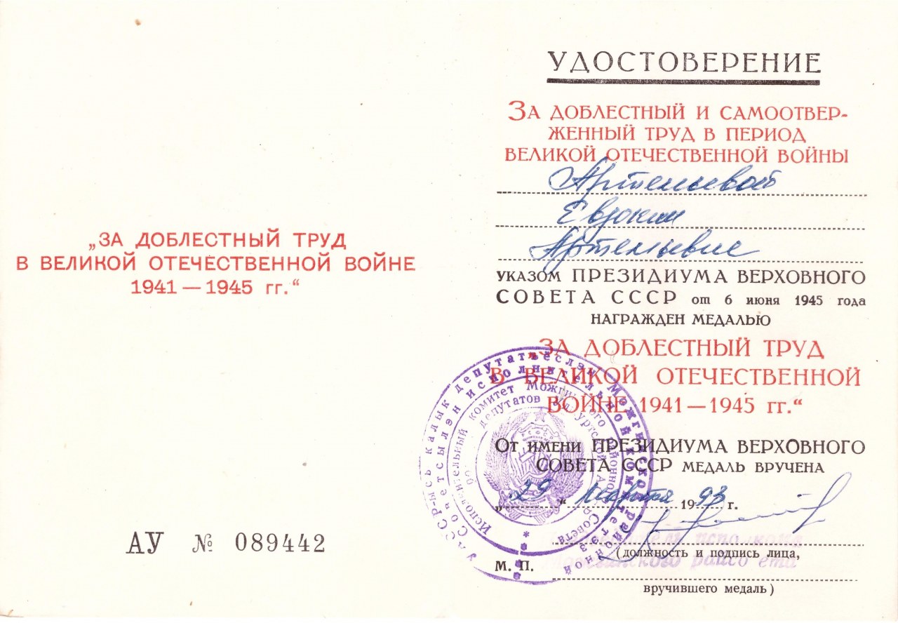 | Награждена: медаль «За доблестный труд в ВОВ 1941-1945 гг.» | 29.03.1993 | ||