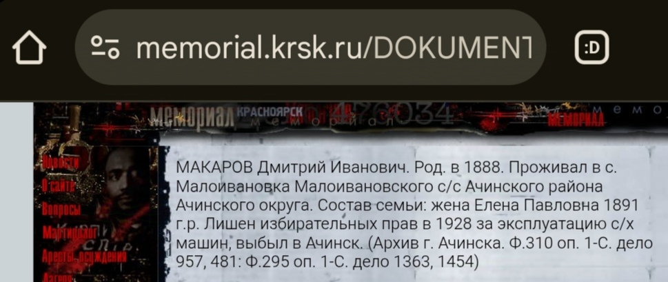 | Родился ребёнок: Макарова Маргарита Дмитриевна | 28.12.1928 | Ачинск | |