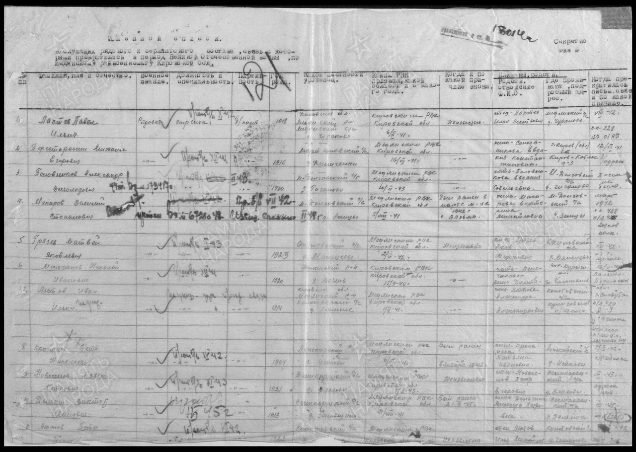 Место службы 201 кп 82 кд (в ведомости подомового обхода стоит ппс 488- принадлежал 30А, куда до 03.1942 г. входила 82 кд)