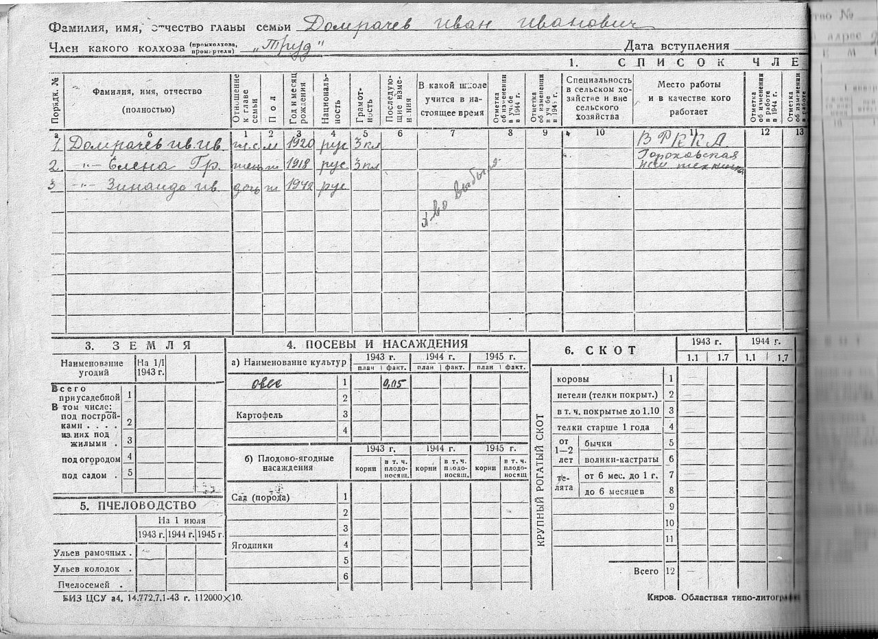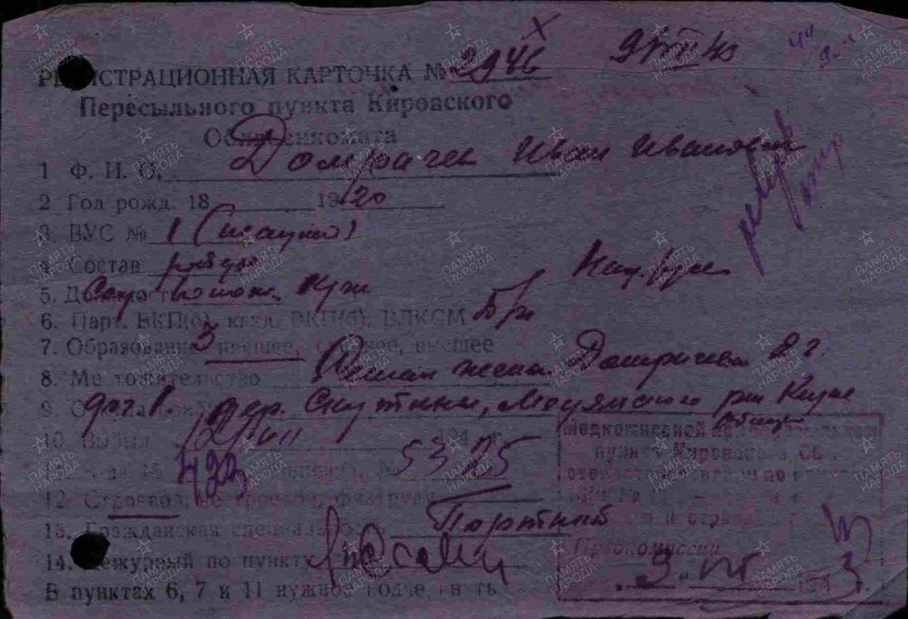 Военно-пересыльный пункт: Военно-пересыльный пункт Кировского областного военкомата, Кировская обл. Выбытие из воинской части: 12.07.1943