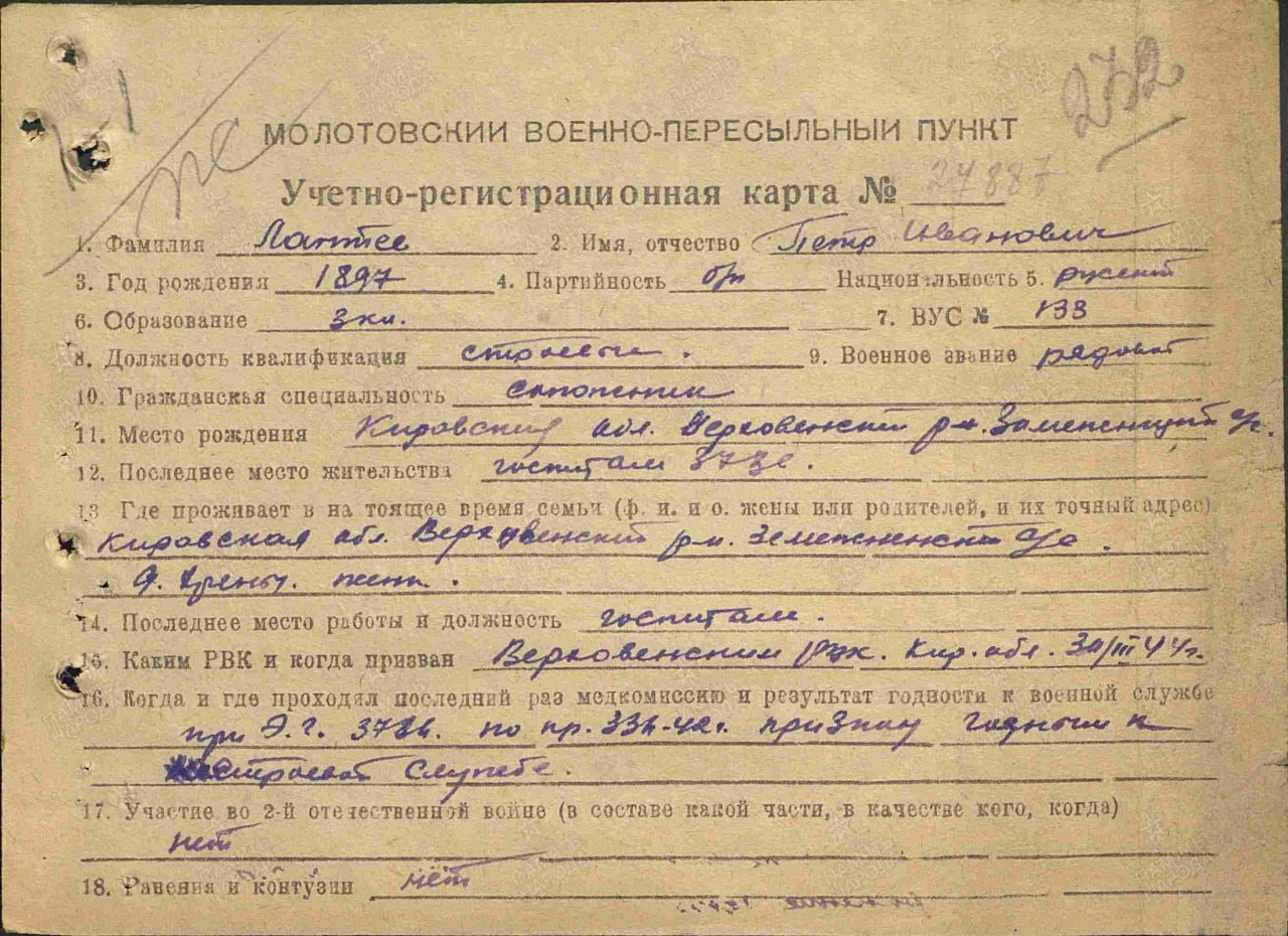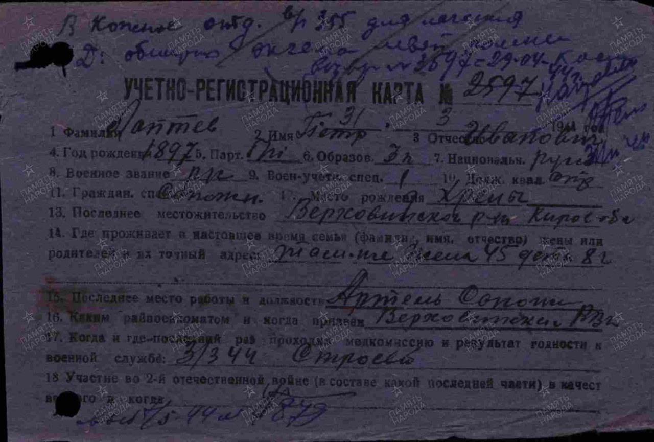 | Родился | 1897 | деревня Хрены (Якушинское) (Юрьянский район, Кировская область) - ныне не существует |
