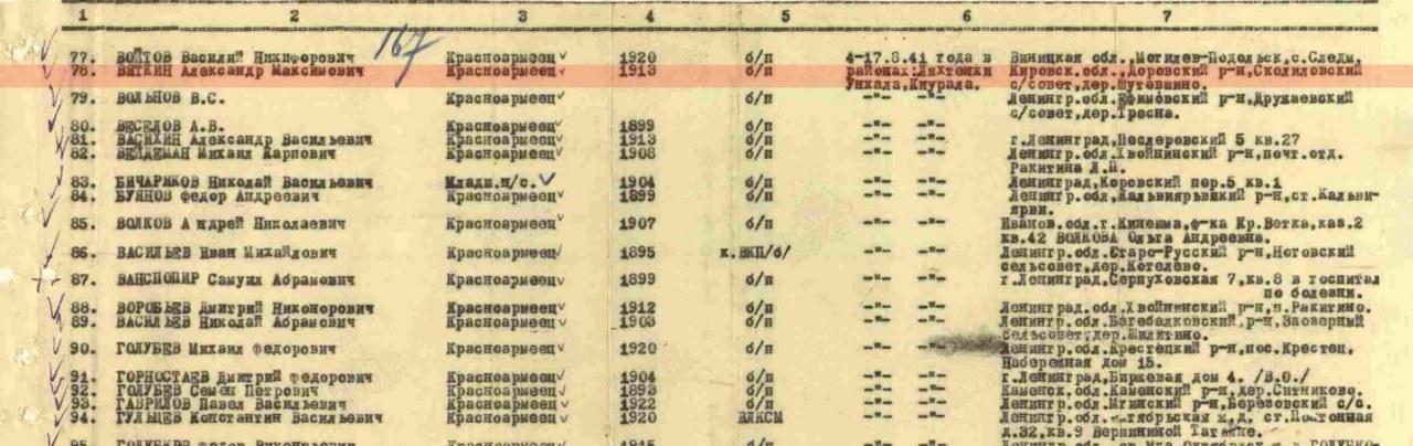 | 4303050025 | ВЯТКИН Александр Максимович | 1913 г. р., д. Шубовщина Скочиловского с/с, рядовой 461 сп, пропал без вести 08.08.1941 г. | Кировская область, Даровский район |