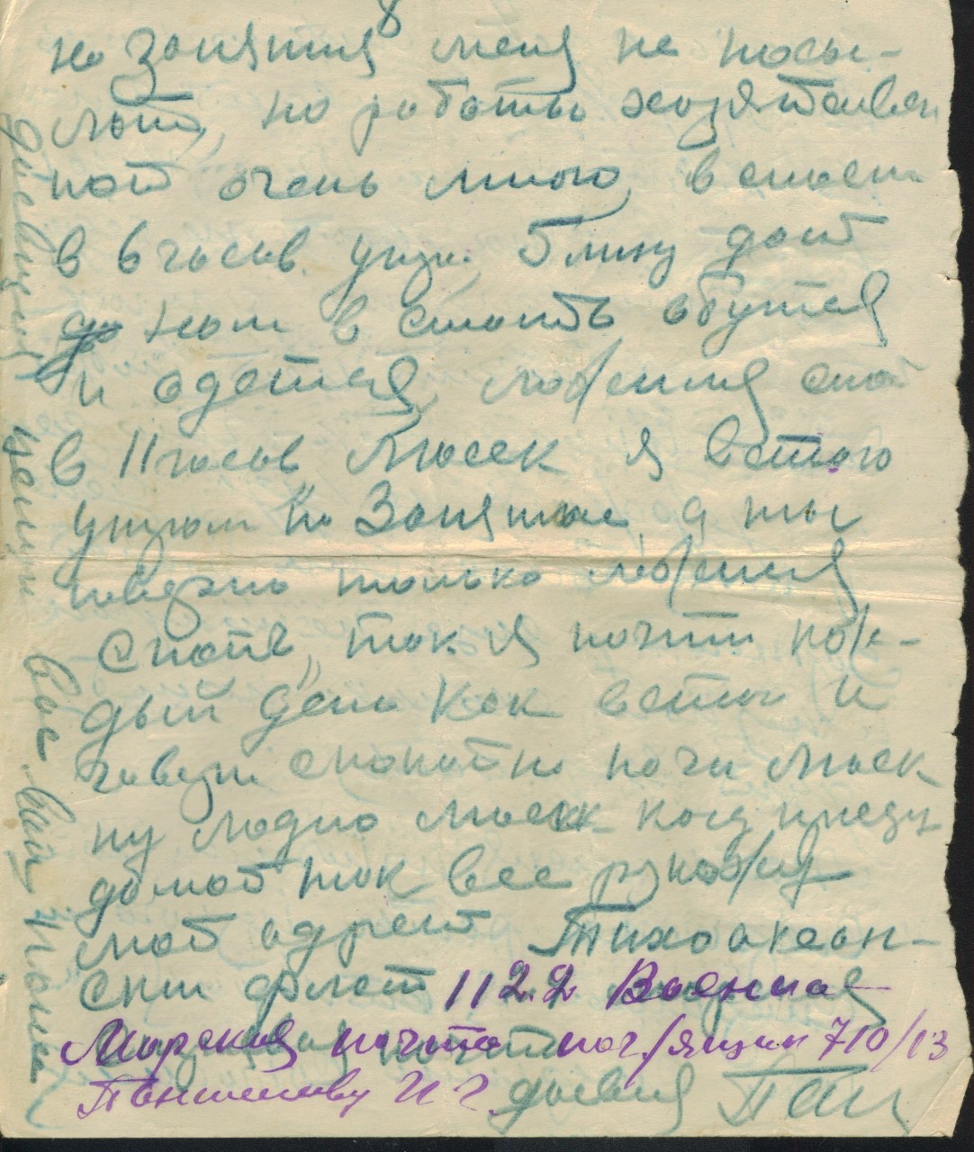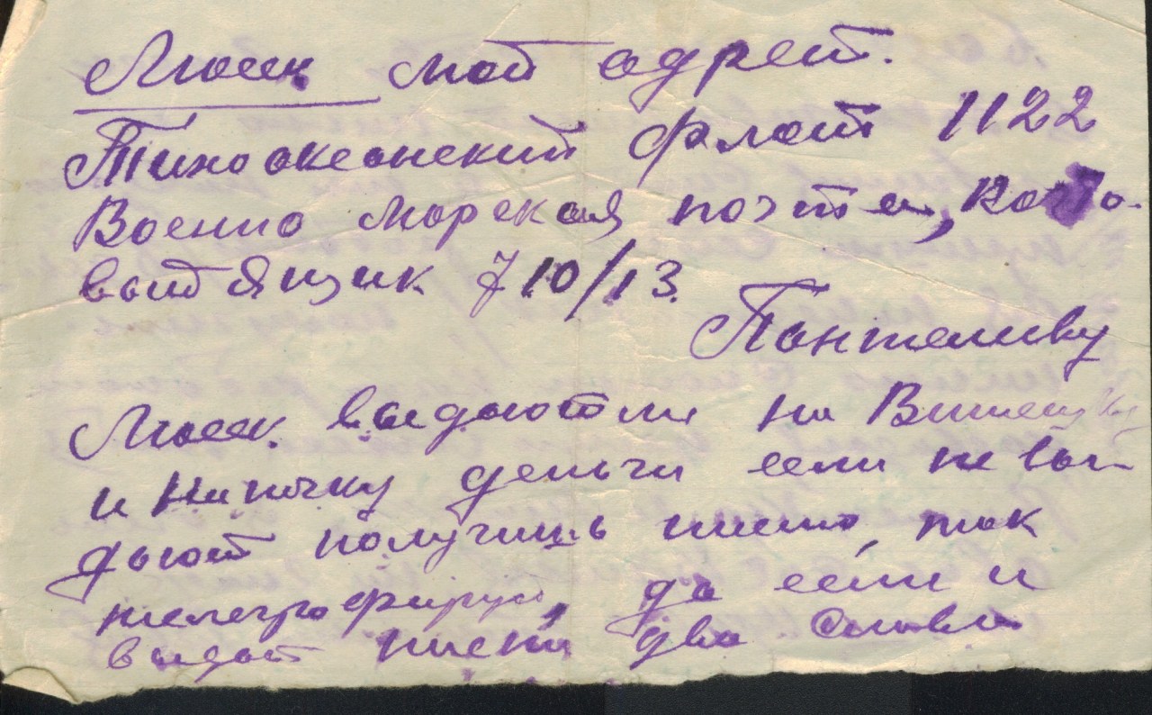 Призван: Слободским РВК 03.11.1941 г в распоряжение командира Владивостокской флотилии, старший команды Зорькин Г. Г.