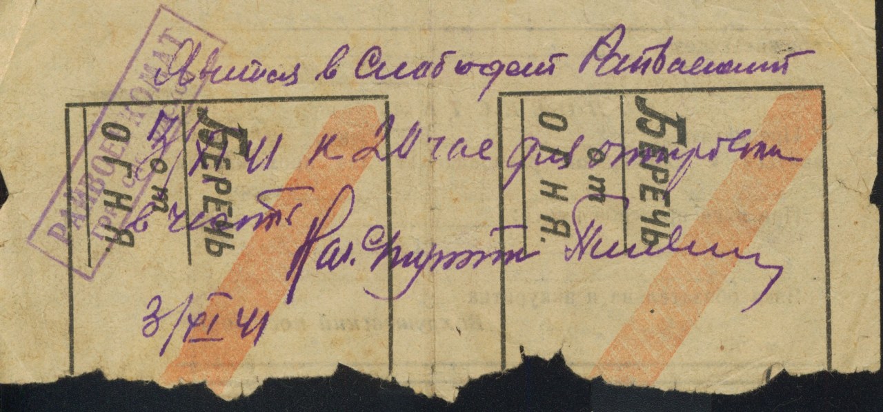 Списки призыва и индивидуального предписания по мобилизации начальствующего состава запаса: начато 30 декабря 1941 г окончено 12 февраля 1943 г // Слободской районный военный комиссариат Кировской области. -2 дела. – 1 дело 279 листов. Контрольная книга увольнения рабочих и служащих начатая с 1 марта 1940 г: кожевенно-обувной комбинат имени В.И. Ленина Главного Управления обувной промышленности СССР п. Вахруши Отдел кадров на 93 листах //Слободской муниципальный архив ф. 143 оп. 9 д. 10.