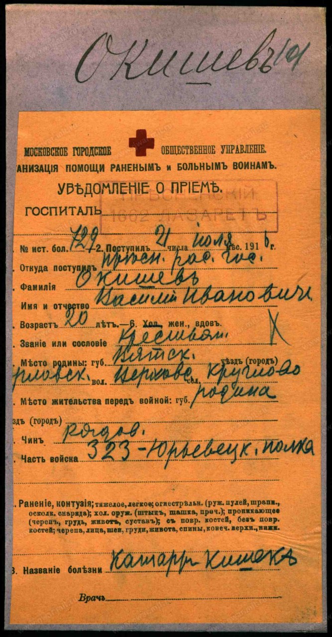 Дата прибытия 21.07.1916