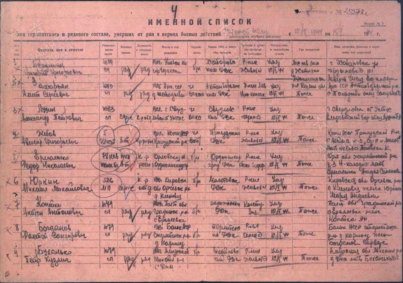 | Умер | 12.01.1944 | умер от ран |