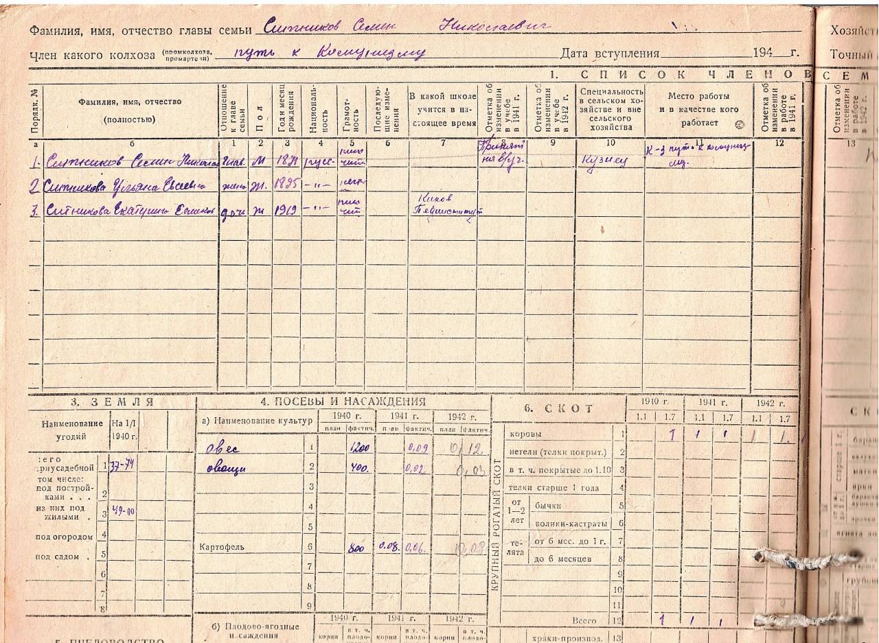 | Умер | Между 1940 и 1942 | починок Малые Ситники (Юрьянский район, Кировская область) - ныне не существует |