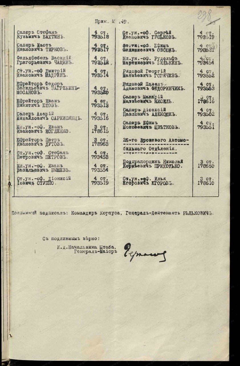 | Награждён: Георгиевский крест IV-й степени. | 26.11.1916 | Должность/Звание сапер Воинская часть 36-й саперный батальон Наименование награды Георгиевский крест IV-й степени Номер награждения 793518 Дата вручения награды 28.11.1916 Тип документа Переписка о награждении | |