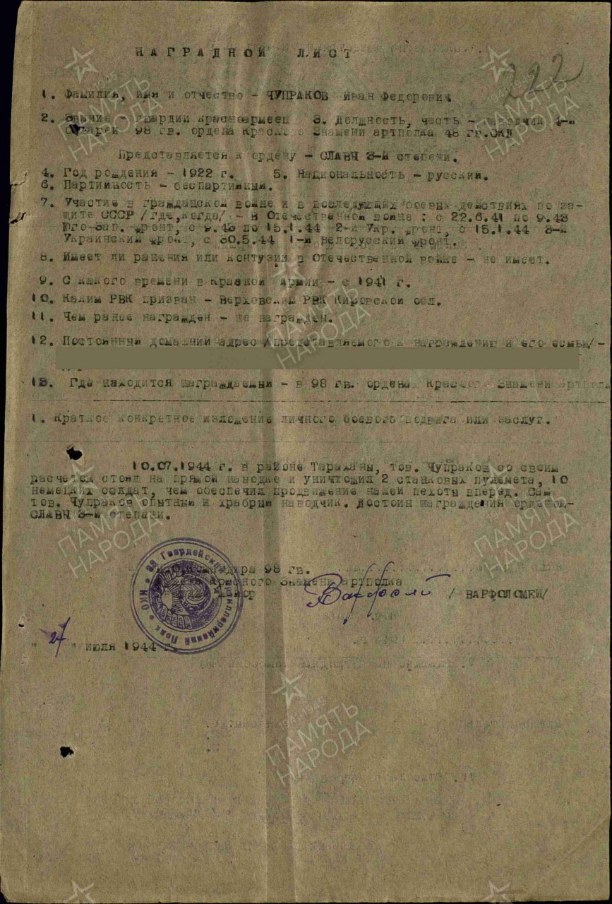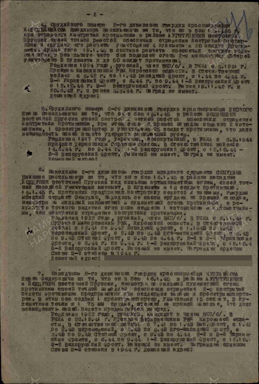 | Родился | 1922 | деревня Чувары (Марка Кривокорытова) (Юрьянский район, Кировская область) - развалины |